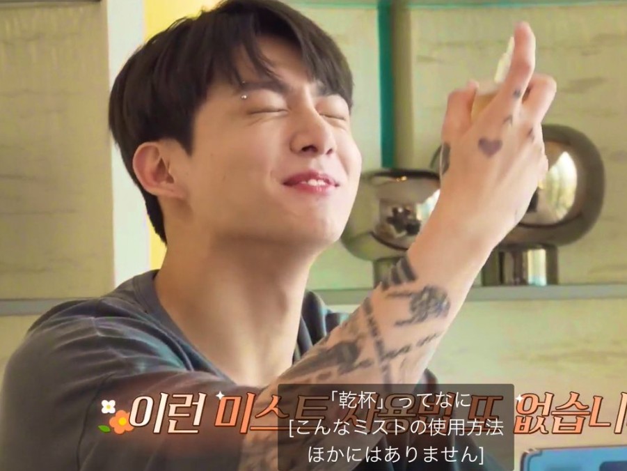 そんなホカンス中に、最上級グレードの部屋をゲットしたグクが部屋にあったアメニティのミストを発見。